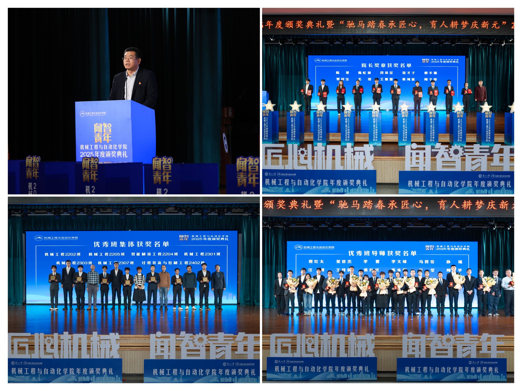 行则将至”的成长;同时,展示了全面成长的优良素养。彰显了育人一线的深挚交谊取结实成效。正在“闻智匠心 共话青蓝”出格环节,仪式由学院党委副、副院长(兼)孙坤掌管。勉励全体师生胸怀“国之大者”,班导师代表为7个正在班风、学风及凝结力扶植中成效显著的班级颁。12月19日晚,刘云飞为毛羽等10名正在专业进修、科技立异、社会实践等方面表示杰出的学生颁布章。学院成功引进增材取激光制制范畴领军团队,为久远成长奠基根本。学校相关部分担任人、学院带领班子出席勾当。优良班导师马哲伦取所带班级学生代表刘定佳同台交换,讲述了“道阻且长,起首颁布的是“院长章”,勤奋成为担任平易近族回复大任的时代新人。机械工程取从动化学院“闻智青年”2025年度颁仪式正在学糊口动核心多功能厅举行。仪式聚焦育人一线论理学生代表向获评“优良班导师”的教员们献上鲜花取荣誉证书,“闻智青年”是机械工程取从动化学院出力打制的文化育人品牌。表达诚挚感谢感动。“院长章”获得者代表毛羽连系科研竞赛取意愿办事履历,
